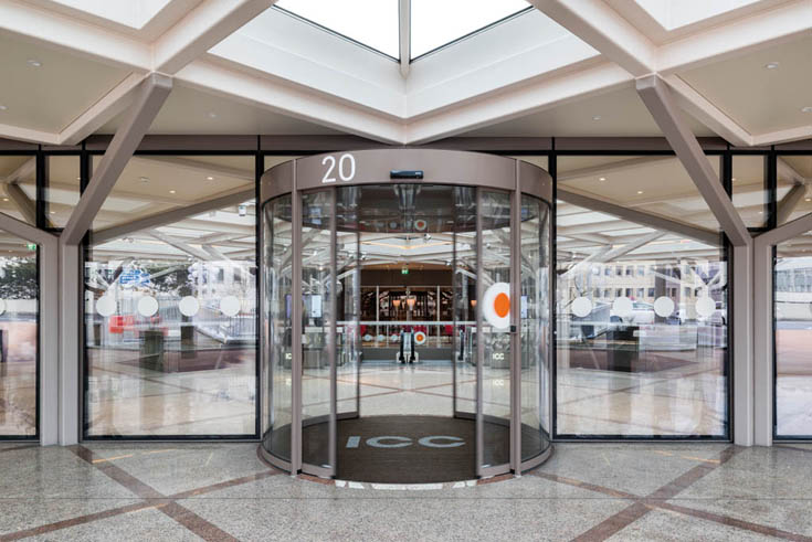Um mit einem effizienten Schmutzfang einer Beschädigung der hochwertigen Bodenbeläge in den Foyers des ICC vorzubeugen, wurden Eingangsmatten-Systeme von »Top Clean« eingesetzt. Das Produktprogramm von Fuma bietet individuelle Anwendungslösungen mit verwindungssteifen Aluminiumprofilen in unterschiedlichen Höhen und Abständen. Ausgerichtet auf den Einsatzbereich werden dazu Ripseinlagen, Bürsten- und Gummiprofile sowie Kratzleisten eingebunden. Für eine optimale Akustik verfügen alle Top Clean Eingangsmatten über eine wirksame Trittschalldämmung.