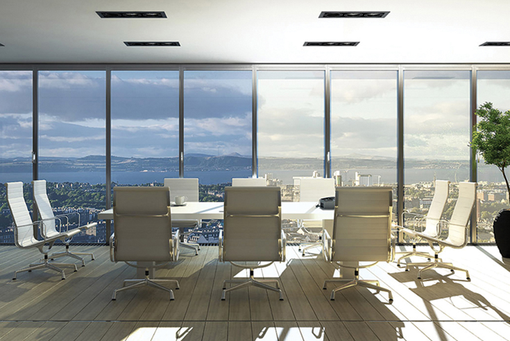 Bis zu 90 %ige Verschattung bei vollem Durchblick und rollofreiem Fassadendesign ermöglicht die dimmbare Sonnenschutzverglasung von EControl-Glas. Der elektrochrome Effekt wird über Licht- und Sensorsignale oder manuell ausgelöst. Weitere Informationen: Econtrol-Glas GmbH & Co. KG