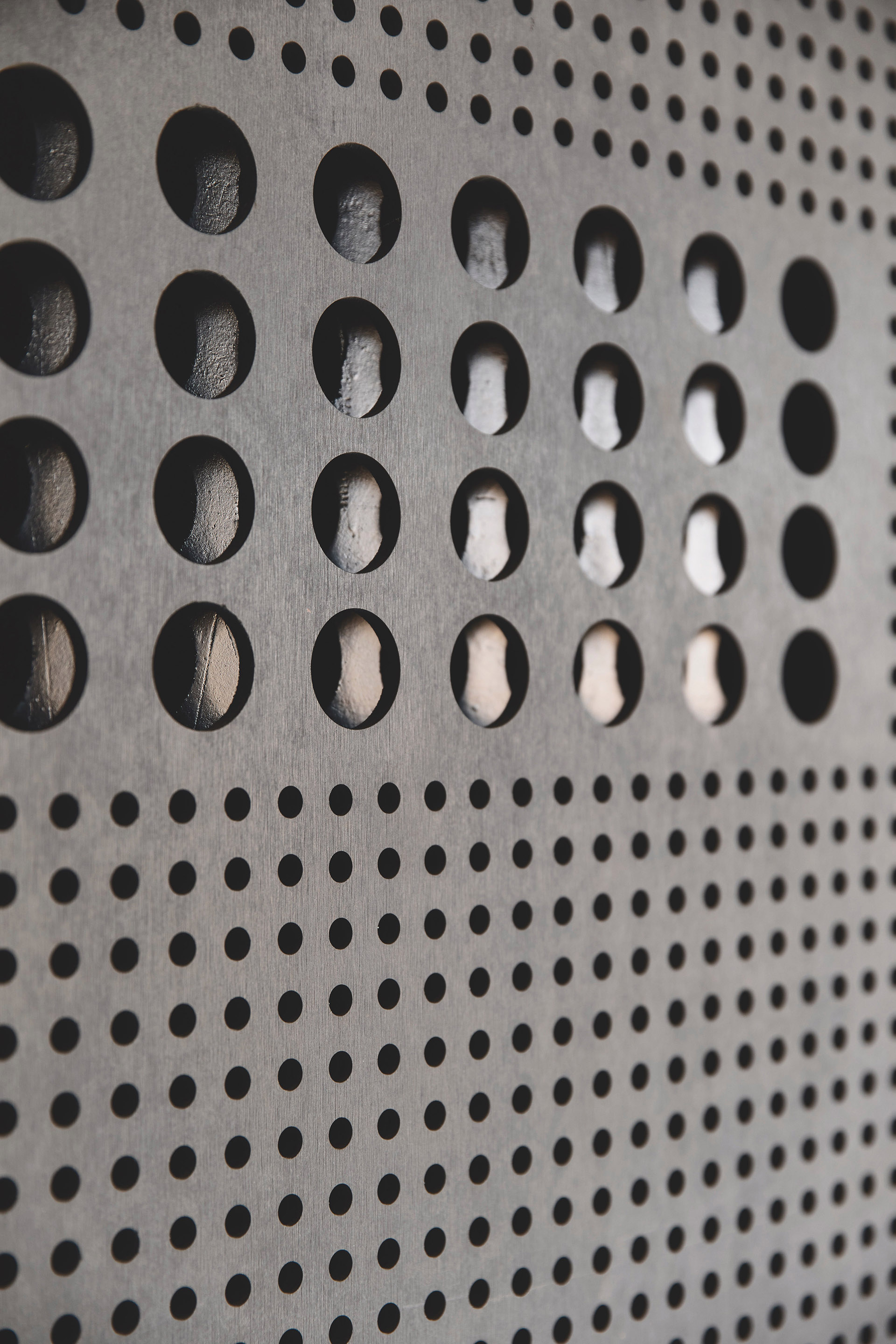 Die beweglichen, perforierten Equitone Fassadentafeln dienen der Verschattung und lassen sich bei Belieben öffnen.
