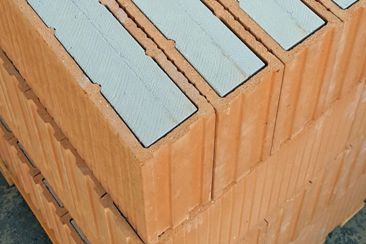 Ferner kommt Calostat in den Fensterstürzen, den U-Schalen der Ringanker und den Deckenrandziegeln zum Einsatz. Auch als oberer brandsicherer Wandabschluss in den Giebelwänden findet die Hochleistungsdämmung Anwendung und hilft so, Wärmebrückenverluste deutlich zu senken.