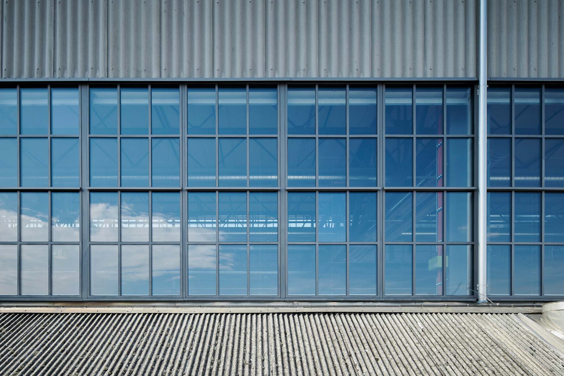 Die äußere Glasfront der ehemaligen Werkshallen bestand aus Einfachverglasungen mit sehr schmalen Profilen. An der Nord- und Südfassade mussten je eine 5 m hohe und 120 m breite Front ausgebaut werden, deren Glaselemente von Stahlträgern gehalten wurden. Insgesamt wurden im Obergeschoss des Salzhauses fast 1900 Festverglasungen erneuert. Da die Fassaden denkmalgeschützt sind, mussten die neuen Festverglasungen die gleichen Profilansichtsbreiten aufweisen wie die ursprünglichen Elemente aus Winkel- und T-Stahlprofilen mit Einfachverglasung.