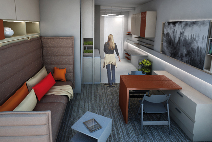 Auf engem städtischen Raum wird Wohnraum knapp. Die Baubranche muss schnell und kosteneffektiv attraktive, flexible Wohnlösungen bereitstellen. Daher stellt Häfele das modulare Raummodell »Micro-Living-Apartment« ins Zentrum seiner Präsentation: Es ist auf dem Messestand im Maßstab 1:1 erlebbar und bietet vielfältige Lösungen für jedes Budget. Das Raummodell ist in Zusammenarbeit mit der Architektin Krista Blassy, PAB Achitekten, Erfurt/München und dem Investor und Betreiber Carsten Fischer, Sonntag KG, Münster entstanden. Beginnend bei einer minimalen Apartmentgröße von knapp unter 20 m2 und basierend auf einem Raster-Zonen-System, kann es je nach Ausstattungsniveau und Aufenthaltsdauer individuell skaliert werden.