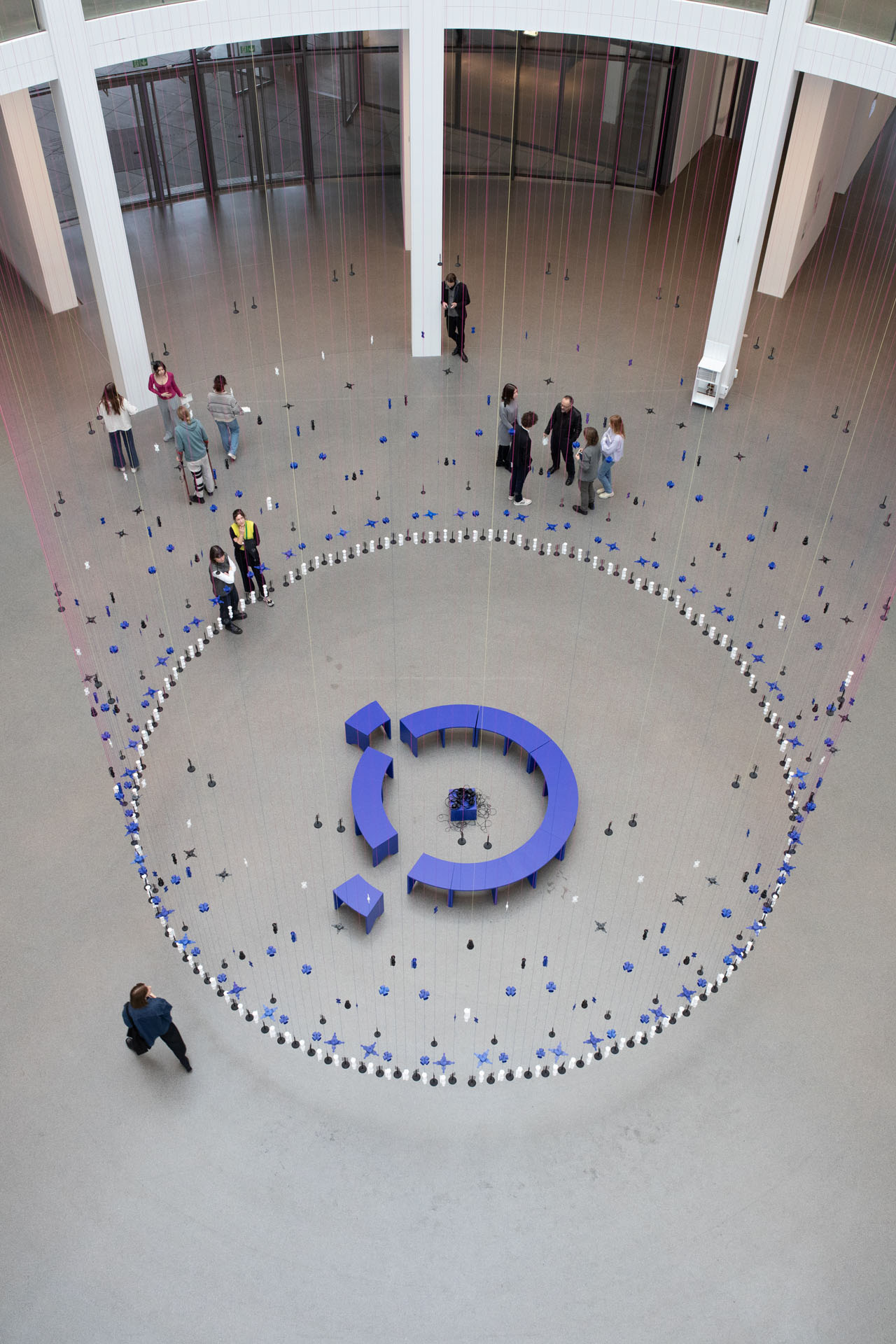 Die Installation ist eine Assemblage aus Textilien, Klang und Erzählungen. Sie ist in drei Teile gegliedert: Ein raumgreifender Perlenvorhang, der von der Kuppel bis zum Erdgeschoss der Rotunde reicht, schafft einen transparenten und gleichzeitig intimen Raum. In ihm entsteht eine Klanglandschaft, die auf einer Reihe von Stimmen aus Diaspora basiert. In der Mitte bildet ein Stuhlkreis einen Versammlungsort, an dem die Besuchenden mit der Installation und untereinander in Kontakt treten können.