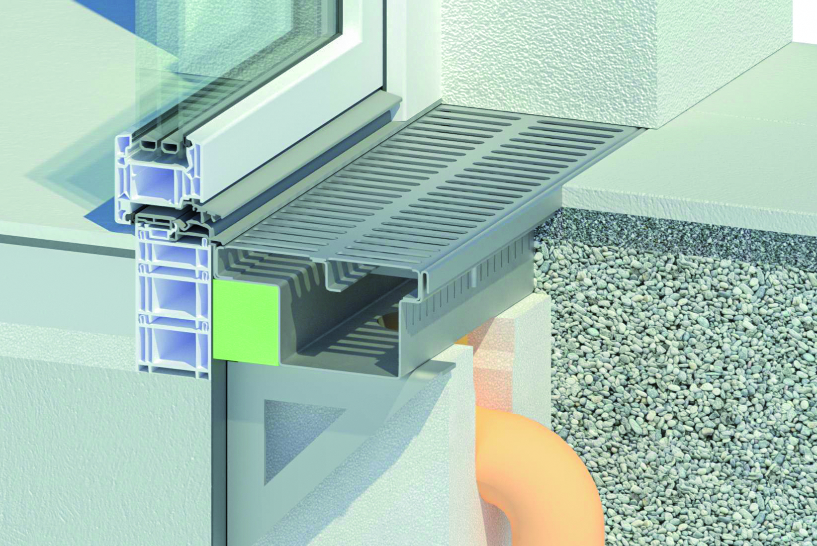Barrier-free construction presents planners with the problem of having to comply with several norms. The thermally-insulated Innorin terrace gutter from Innowall is fastened on brackets settlement-free. The fasteners are sealed before the holder is installed, so that the building envelope is closed again. The insulation eliminates the thermal bridge that conventional gutters create at the transition from the window profile to the concrete ceiling.