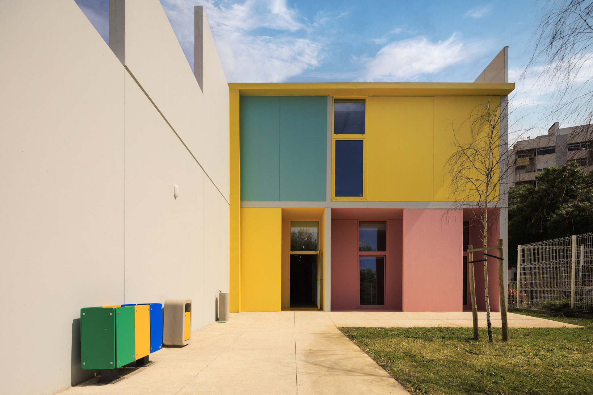 Das portugiesische Architekturbüro Summary hat eine Kindertagesstätte als Prototyp entworfen. Grundlage war eine Initiative der Lissaboner Stadtverwaltung zum Bau von Kinderkrippen in verschiedenen Stadtteilen. Dem Ganzen liegt ein konstruktives Prinzip zugrunde, das sich typisiert anwenden lässt. Dadurch können die verschiedenen Projekte wirtschaftlich effizient und mit einem hohen Wiedererkennungswert verwirklicht werden. Gleichzeitig geht die Umsetzung schneller: So wurden in nur 13 Monaten insgesamt vier Kinderkrippen gleichzeitig gebaut.