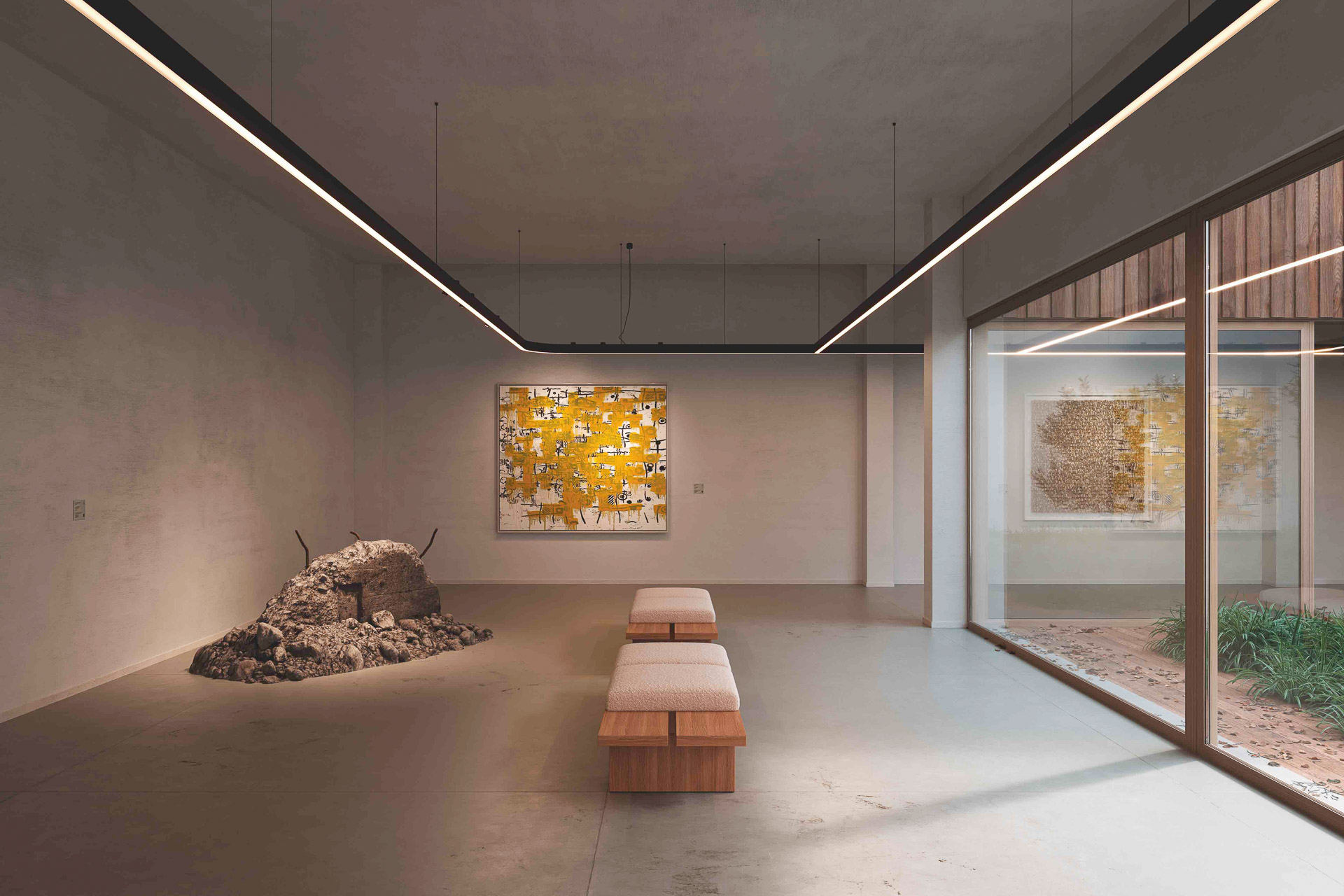 Omniliner ist für Aufbau-, Einbau- und Pendelmontage ausgelegt und lässt sich auch rahmenlos integrieren. Die Profile können getrennt, verbunden oder geometrisch geformt werden und eignen sich damit sowohl für reduzierte lineare Anordnungen als auch für komplexe Lichtstrukturen. Ergänzende Top-Spots ermöglichen die Akzentuierung von Zonen, Wegen oder architektonischen Details, ohne die Kontinuität der Lichtlinie zu unterbrechen.