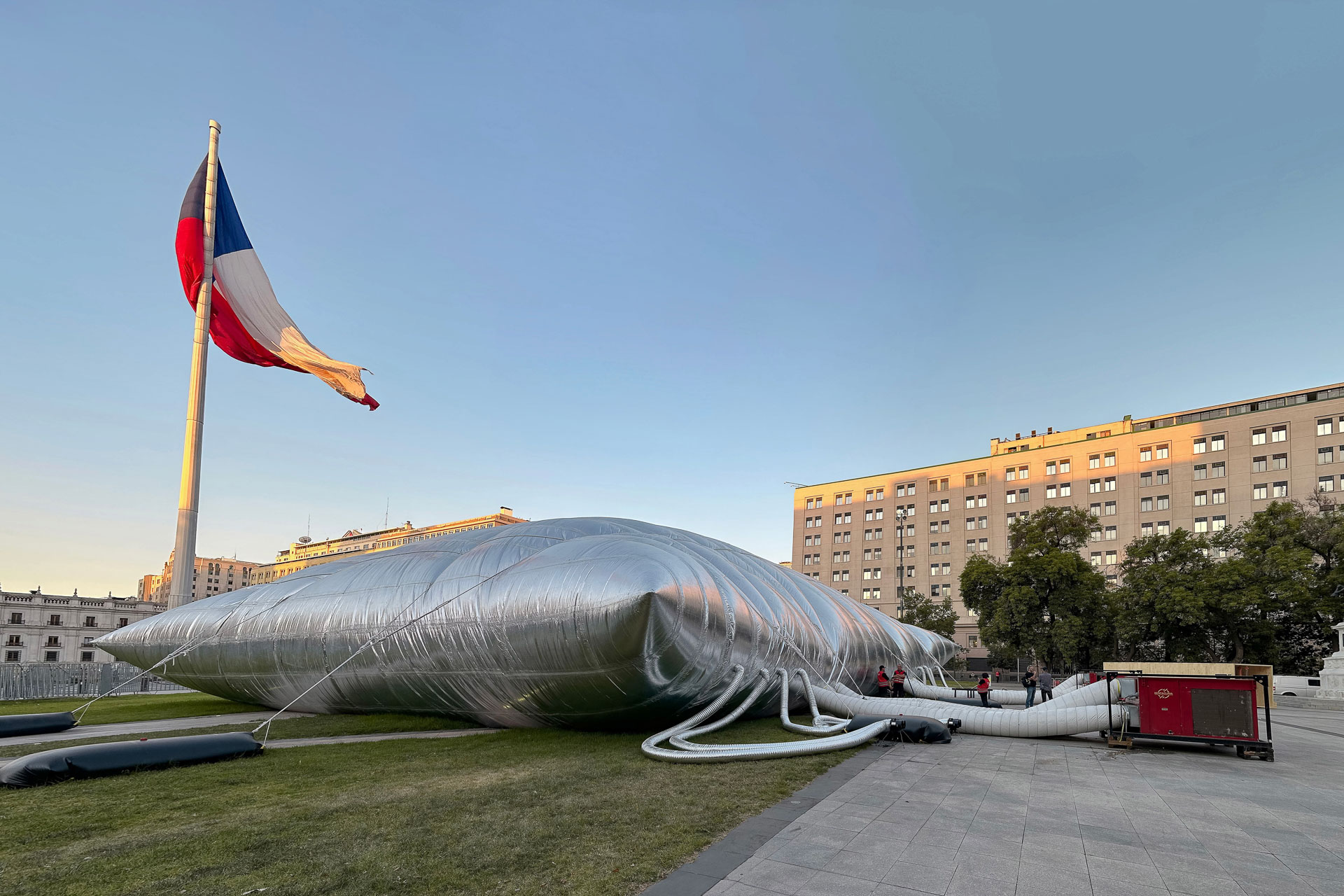 Bezeichnend an der Auswahl Smiljan Radićs ist – darin lässt sich wenigstens eine leichte Zukunftsgewandtheit der Jury ablesen –, dass er kein Architekt ist, der in Superlativen denkt und ein Megaprojekt nach dem nächsten realisiert. Radić überzeugt durch seine starken konzeptionellen Entwürfe, klare Formen, Detailverliebtheit und eine expressive Materialwahl. Seine Architektur steht in einer ständigen Balance zur Kunst. Radić spielt in vielen seiner Projekte mit Grenzen: Grenzen zwischen Kunst und Architektur, zwischen innen und außen sowie zwischen Beständigkeit und Temporärem. Die Jury sieht in diesem Spannungsfeld etwas Unsicheres, das sie besonders reizvoll findet. Das Feingefühl für die Auseinandersetzung mit Grenzen beweist Radić 2023 mit seinem temporären Entwurf für die 22. Biennale der Architektur und Urbanistik in Chile. Radić schuf dort mit dem Projekt „Guatero“ einen temporären Veranstaltungsraum für 350 Personen. Die aufblasbare Membran setzt sich aus Folien zusammen, die eigentlich zur thermischen Trennung verwendet werden. Durch ein bestimmtes Überlagerungsverfahren der Folien ergeben sich Fugen, über die der Innenraum mit Tageslicht belichtet wird. Nach 10 Tagen wurde der Pavillon abgebaut und die einzige hinterlasse Spur, war das heruntergedrückte Gras. Diese Sensibilität für Architektur und Natur beweist Smiljan Radićs bei vielen seiner Projekte.