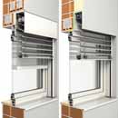 Die »Modulo-Raffstoren« von Roma können in drei verschiedenen Ausführungen eingesetzt werden: als Schachtsystem oder in den neuen Varianten .P und .XP mit 120 bzw. 140 mm Tiefe. Die Möglichkeit zwischen seil- oder schienengeführtem Behang zu wählen, gibt zusätzliche Gestaltungsfreiheit. Als Behang können flache, gebördelte sowie innovative Lichtlenk-Lamellen eingesetzt werden.