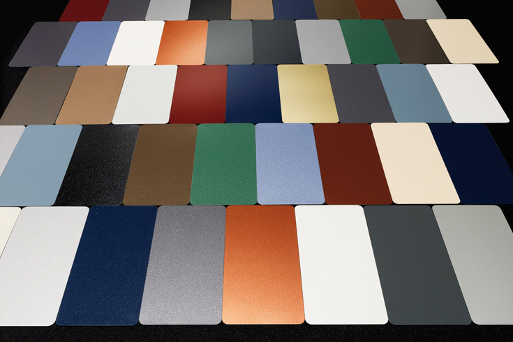 Ein neues Dreischichtsystem von Tata Steel garantiert Korrosionsschutz auf Basis des feuerverzinkten Galvalloy-Trägermaterials und erlaubt so verbesserte Produkteigenschaften. Dazu ergänzen neue Farben die Palette: »Elements« umfasst perlmuttartige Oberflächen, dazu gibt es die Farbbereiche »Matt«, »Solid« oder »Special Metallics«.