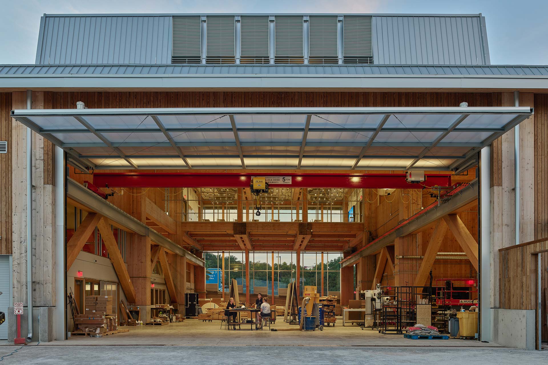 Im Süden öffnet sich die Werkstatt mit einem großen Schwingtor aus Polycarbonat zum Anlieferungshof. © Timothy Hursley
