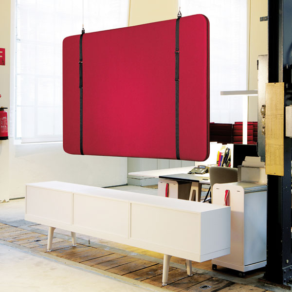 Das Akustikpaneel »Silento« von Ruckstuhl absorbiert den Schall, sorgt dafür, dass sich der Lärm nicht ausbreitet und ist ein bunter Blickfang. Das von Atelier Oï designte Paneel hängt entweder diskret an der Wand oder an dünnen Drahtseilen von der Decke herab. Neben ästhetischen Komponenten wie der Auswahl von 45 Farben in Kombination mit 6 Gurtfarben, bieten die Paneele eine Akustik mit Schallabsorberklasse A.
