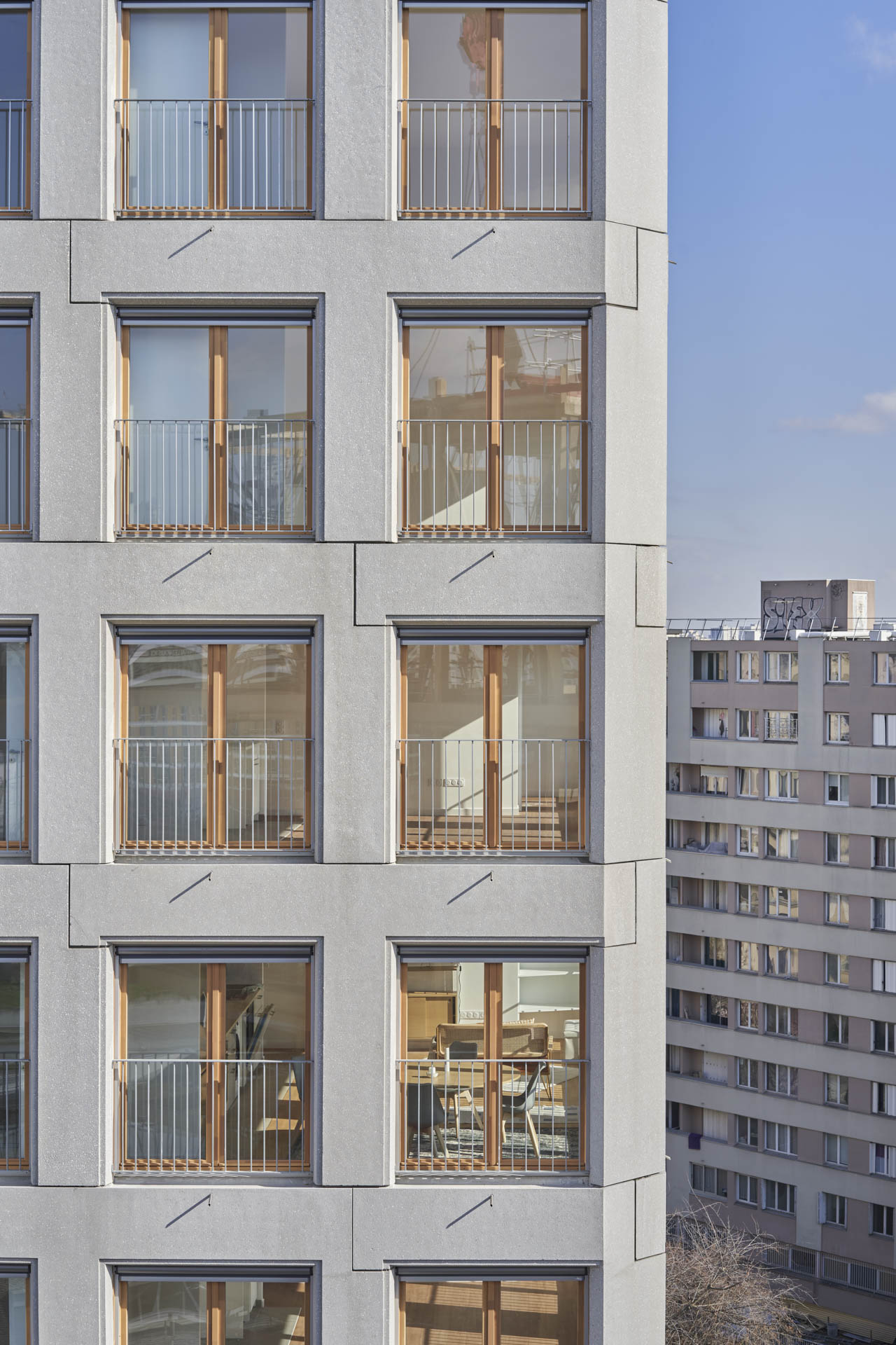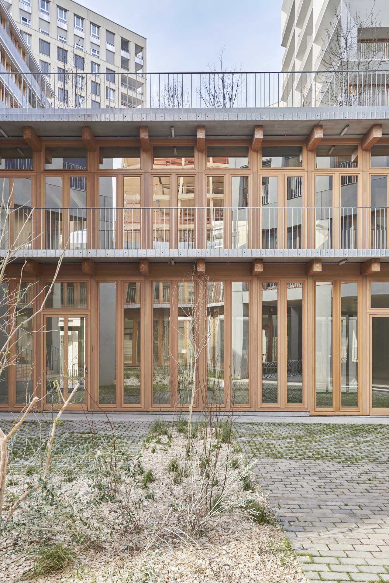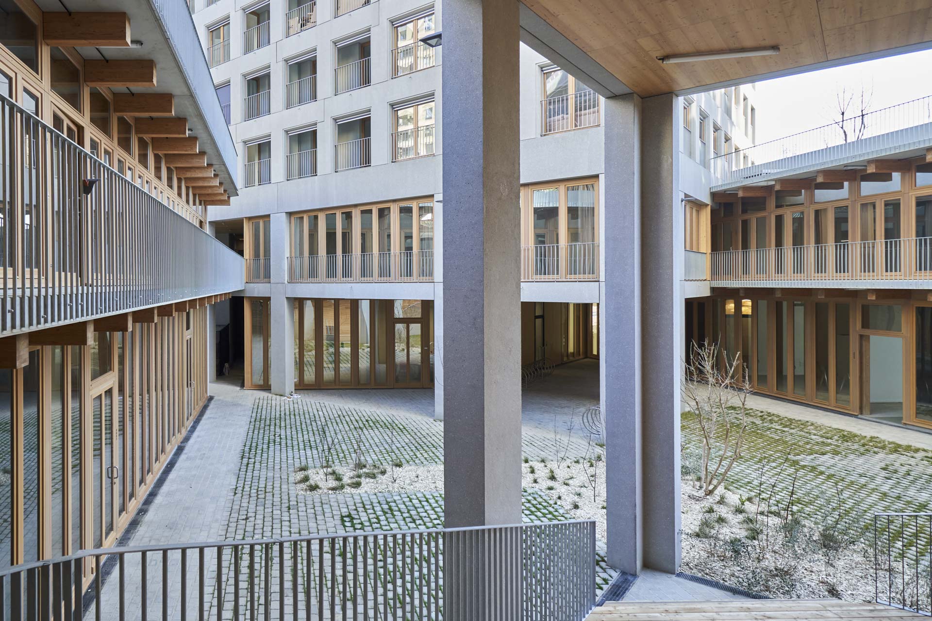 Der Gebäudekomplex Lot H im Pariser Neubauviertel Chapelle International vereint Wohnen und Arbeiten unter einem Dach. Hinter seinen Betonfassaden verbirgt sich über weite Strecken ein Holzskelett.