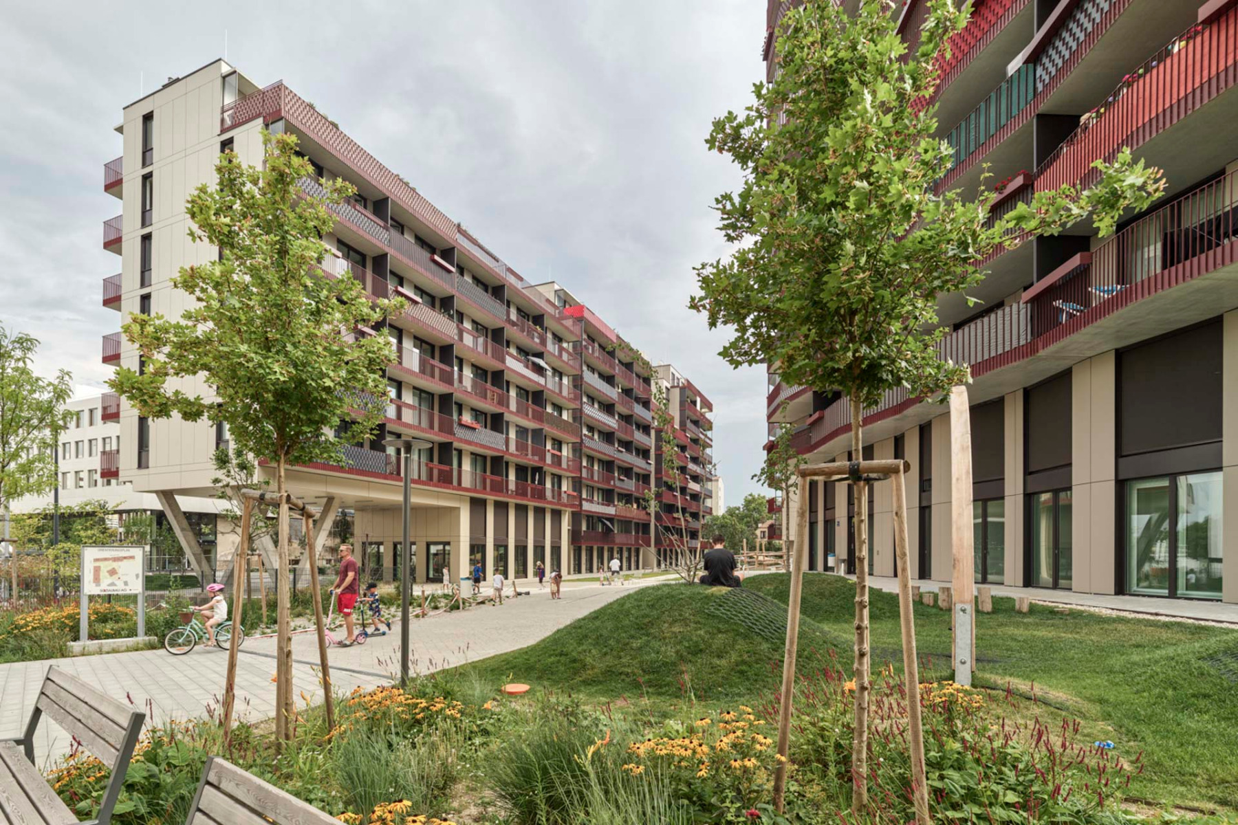 In a total of five new buildings, the Kuku23 neighbourhood comprises subsidised flats, workshops and studios as well as a school for music and dance. © Kurt Hörbst