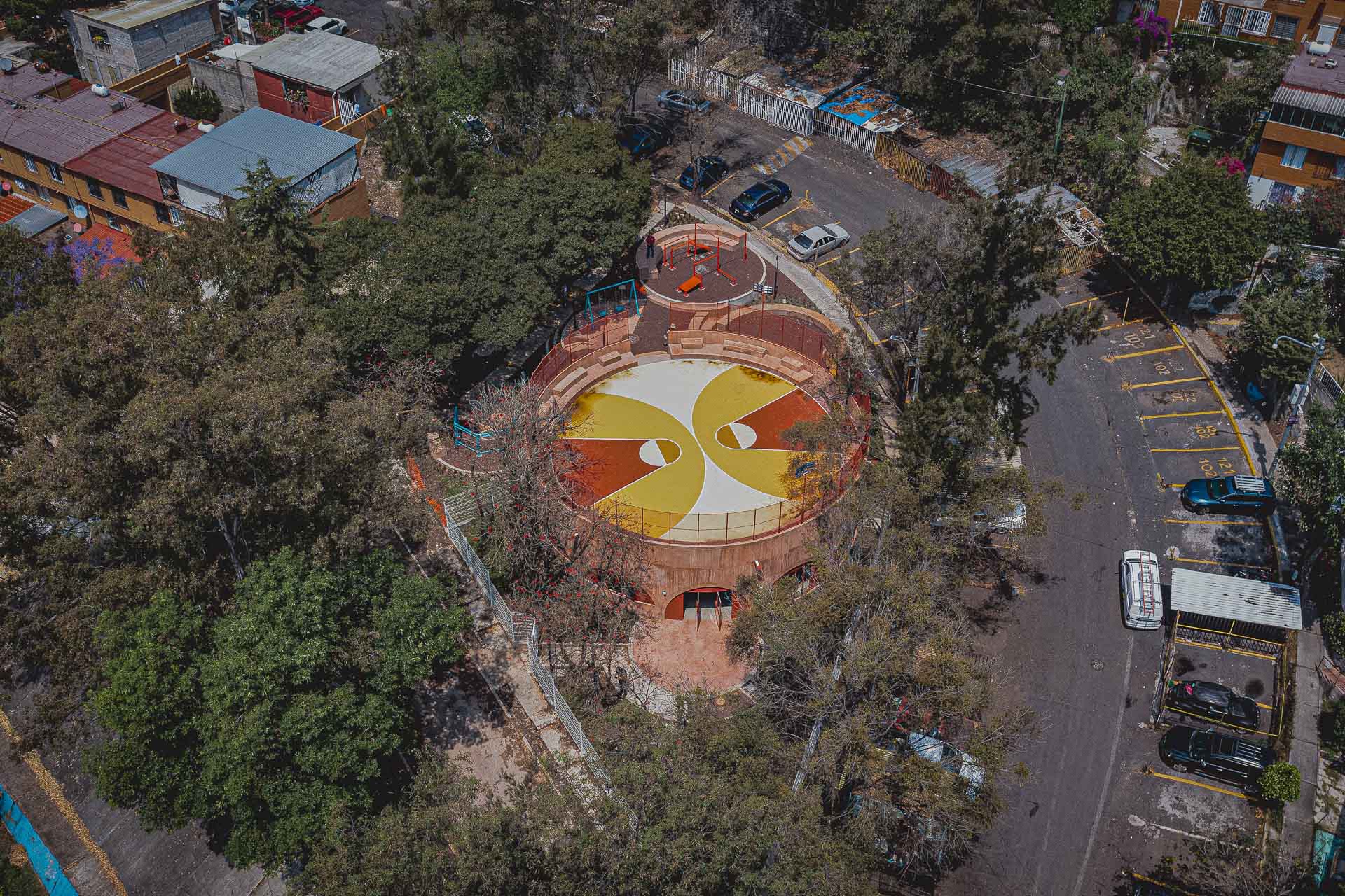 On a triangular plot of land on the southern edge of the Infonavit Santa Fe residential complex, the architects have breathed new life into a previously unused site. Due to structural decay, the neighbourhood hardly used the site anymore and it was increasingly considered unsafe. Rather than accepting the area as derelict infrastructure, Infonavit commissioned a comprehensive renovation of the site. The result is a new multi-purpose hall, children's playgrounds, outdoor fitness areas, and a restored sports field. Today, the area functions as an urban hub — a place that combines activity, community and safety.