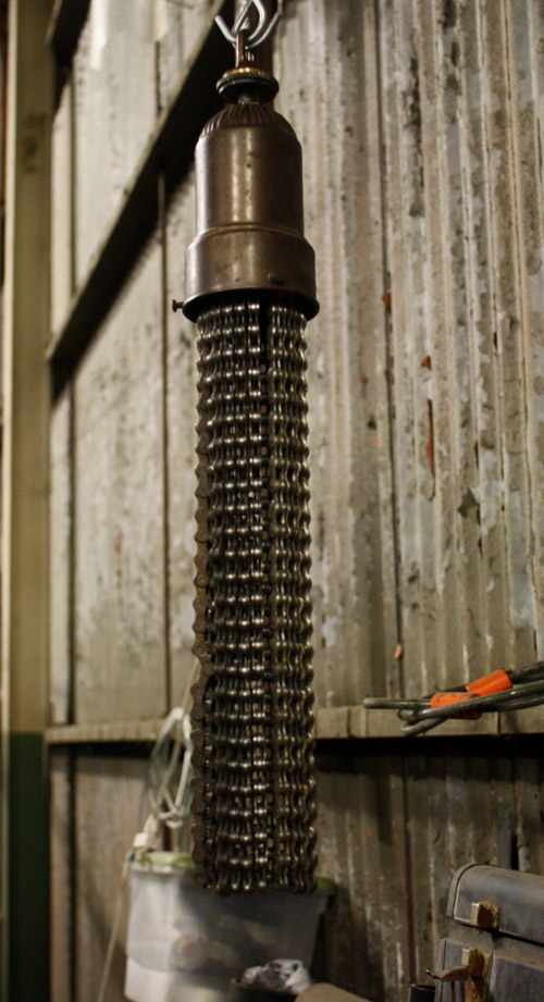 Rough polish: Chandeliers from cycle parts by Carolina Fontoura Alzaga.