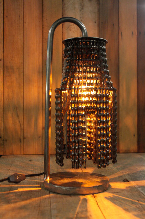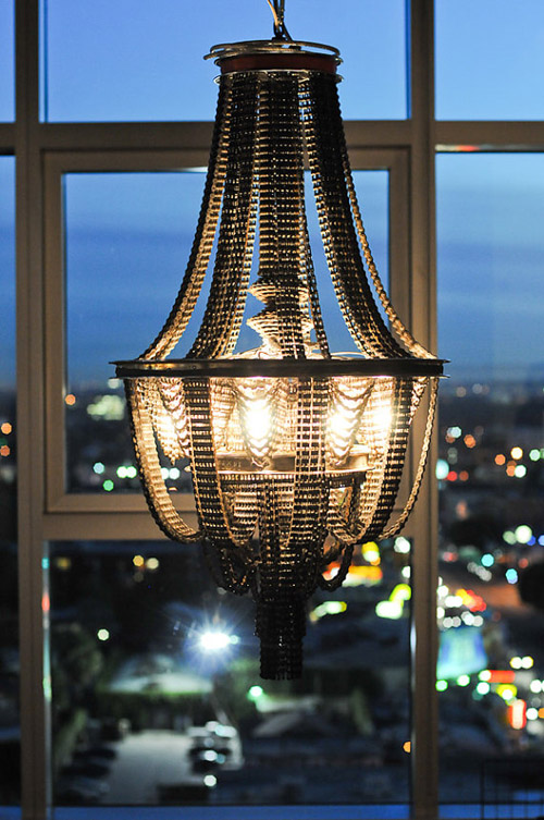 Well the artist Carolina Fontoura Alzaga also shares your passion for a “bit of rough” and has expressed it in these fabulous chandeliers made of recycled metal and salvaged bicycle parts .