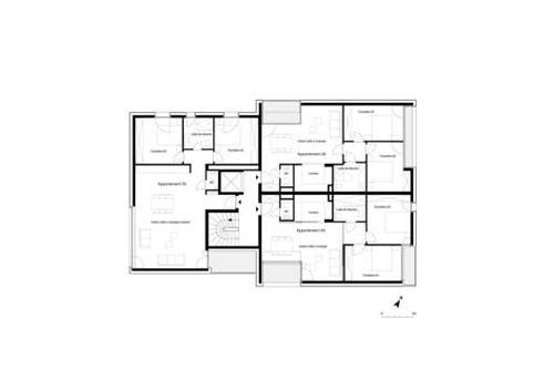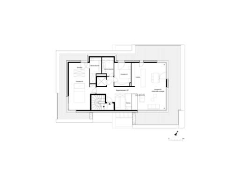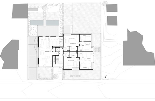 In a Luxembourg suburb, this small apartment building designed by Metaform Architecture, contains seven residential units. It achieves a significant increase in the density of the built fabric, whilst at the same time fitting quietly in to the suburban context in terms of scale and massing. This has been achieved by individualizing each apartment as much as possible thus breaking down what might otherwise appear as an out of context monolith.