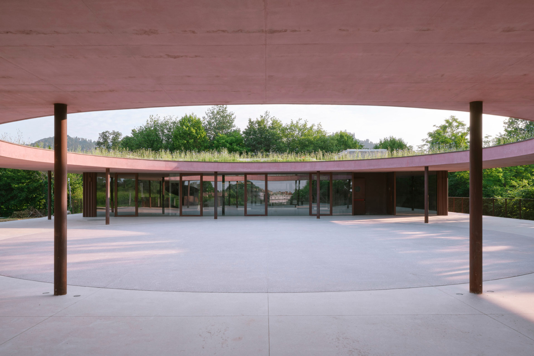 The roof edges are curved both outwards and upwards, lending the concrete structure an additional visual lightness. © Francesca Iovene